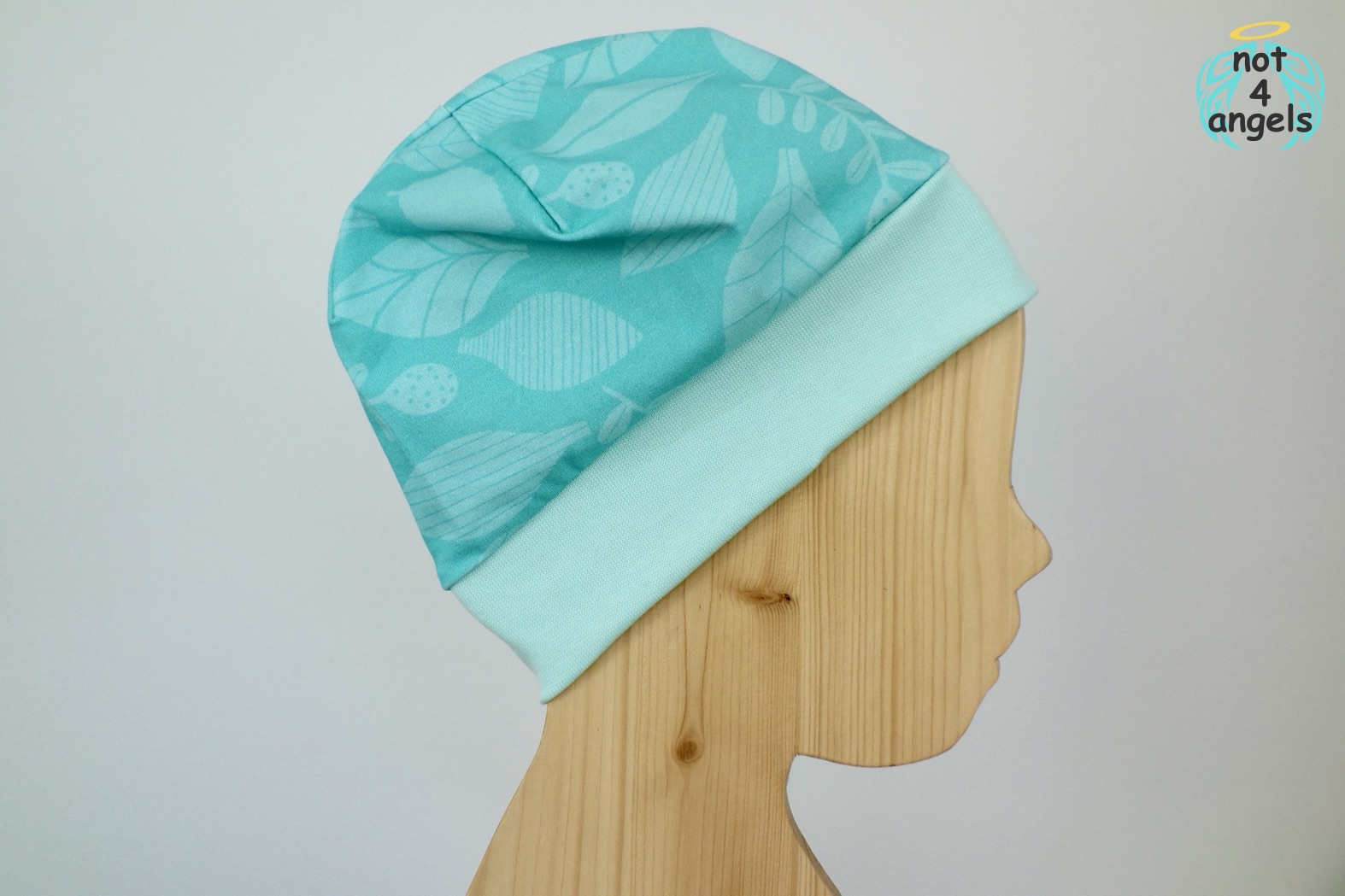 Die Mütze passt bei einem Kopfumfang von ca. 44-49cm. Das Bündchen liegt an den Ohren an, der Haubenteil ist weiter und wirkt durch seine Überlänge pfiffig.