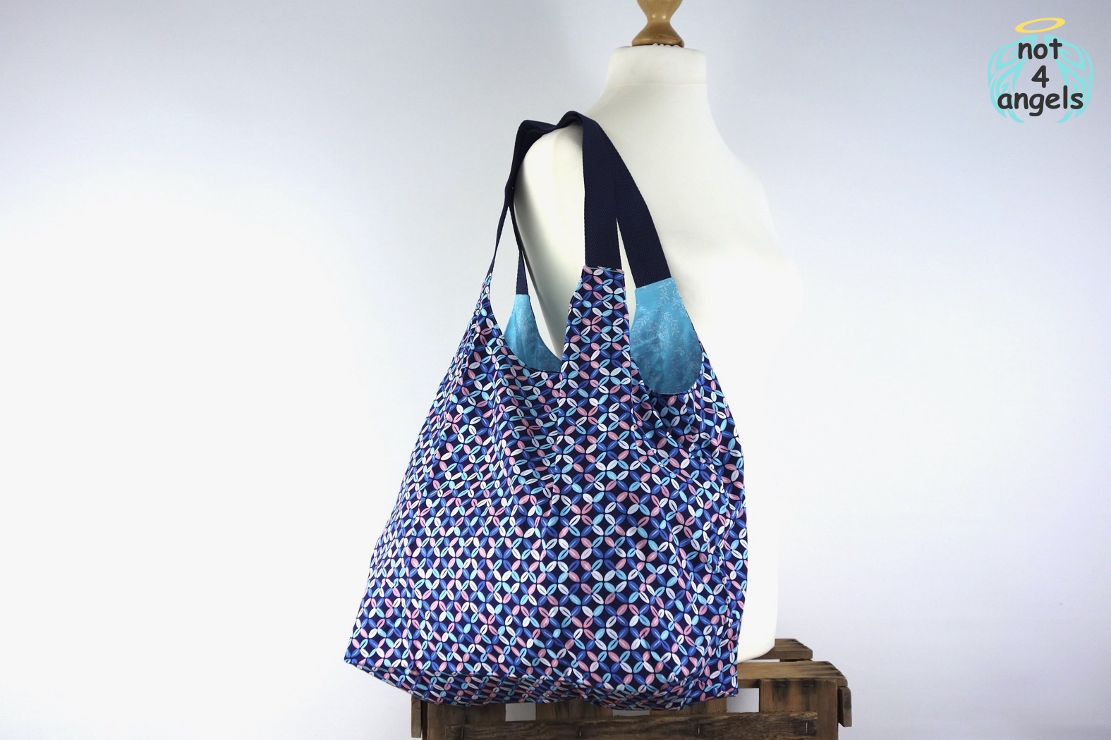 Einkaufsbeutel Grafik-Blüten auf dunkelblau
