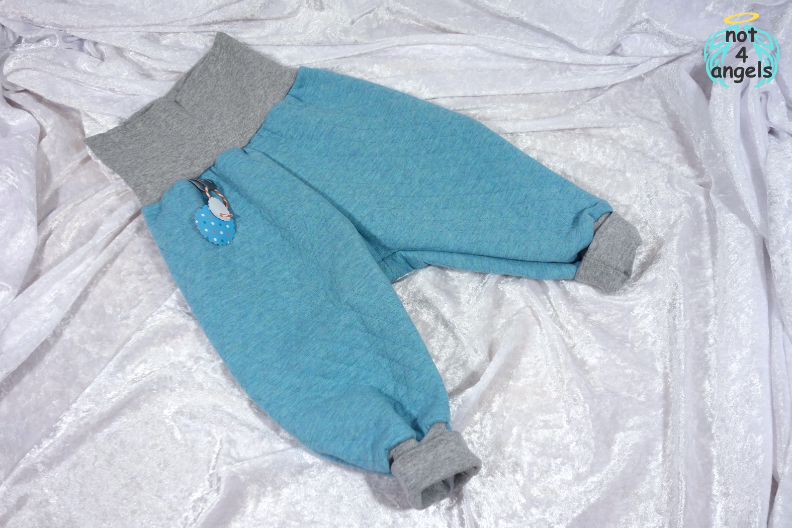 gesteppte Mitwachshose türkis/grau Gr. 68-74