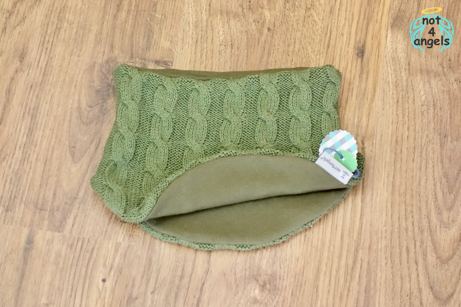 Die Halssocke ist wendbar. Die Innenseite kann also nach außen getragen werden.
