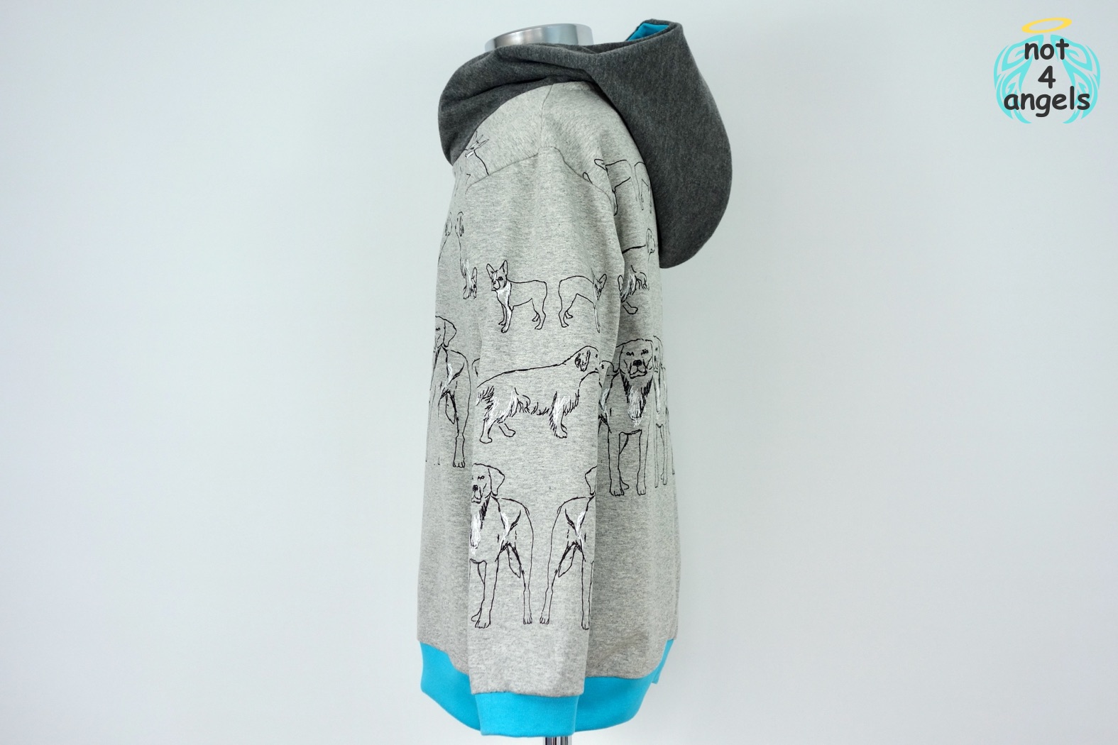 Der Hoodie besteht aus weichem Stretchjersey. Die Kaputze ist mit farblich passendem Jersey gefüttert.