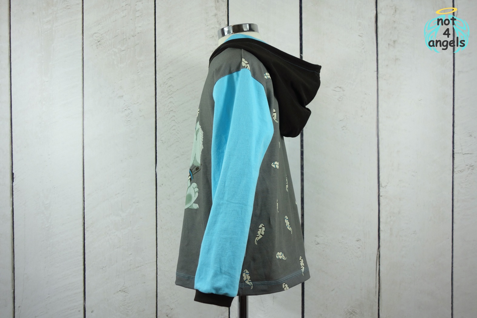 Der Hoodie besteht aus weichem Stretchjersey. Die Kaputze ist farblich passend gefüttert.