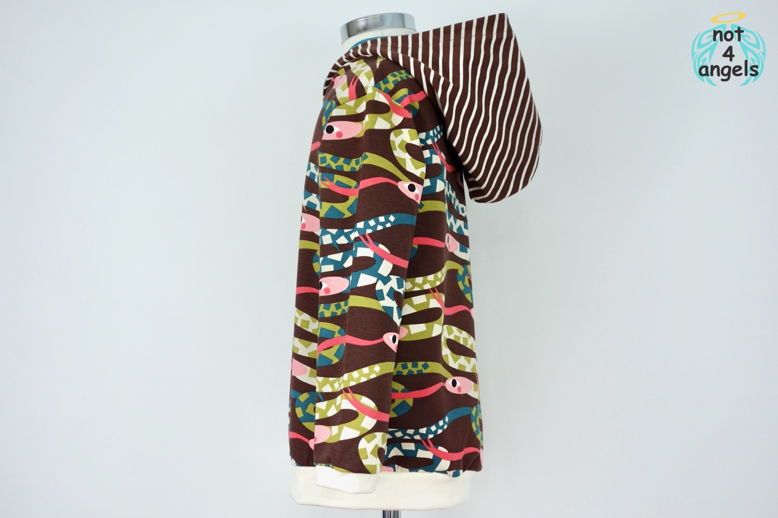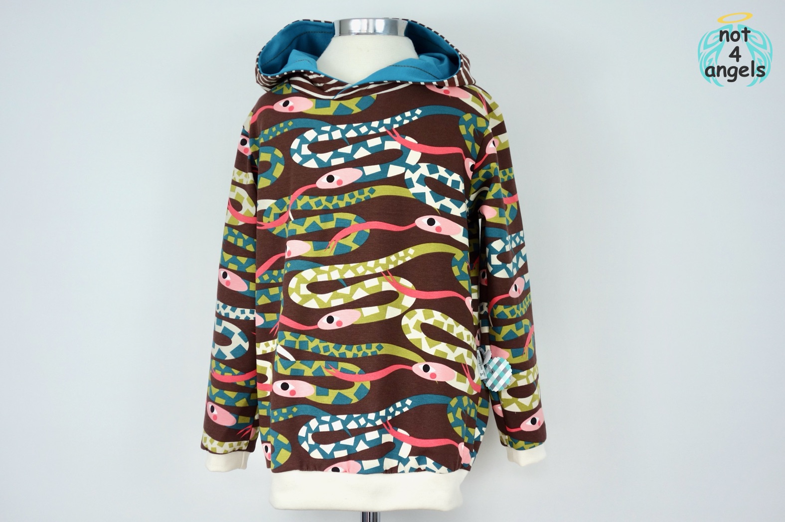 Der Hoodie besteht aus weichem Stretchjersey. Die Innen-Kaputze ist mit farblich passendem Stretchjersey gefüttert. Den unteren Abschluss bildet ein Bündchen für den lockeren coolen Sitz