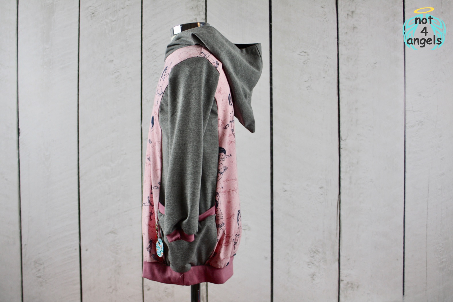 Eine farblich passend gefütterte Kaputze gibt dem Kleid den letzten Pfiff.