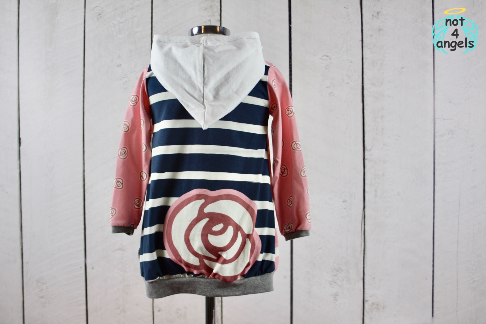 Eine farblich passend gefütterte Kaputze gibt dem Kleid den letzten Pfiff.