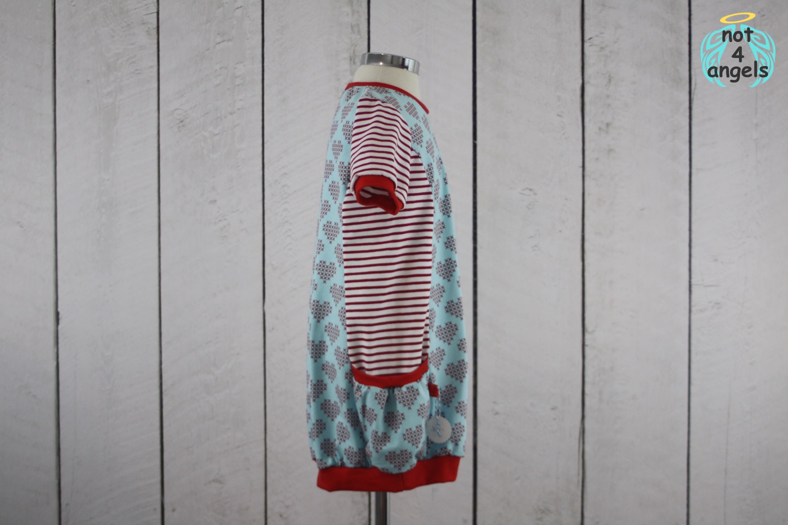 Der Ballon-Effekt entsteht durch das Bündchen am unteren Rand, das alle Bewegungen mitmacht. Die kurzen Ärmel haben ebenfalls einen Bündchen-Abschluss.