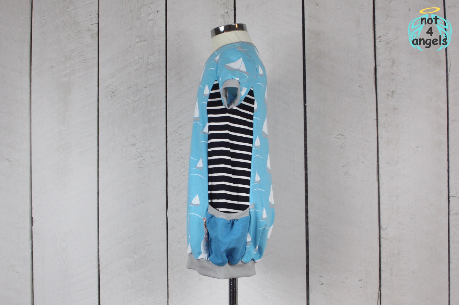 Der Ballon-Effekt entsteht durch das Bündchen am unteren Rand, das alle Bewegungen mitmacht. Die kurzen Ärmel haben ebenfalls einen Bündchen-Abschluss.