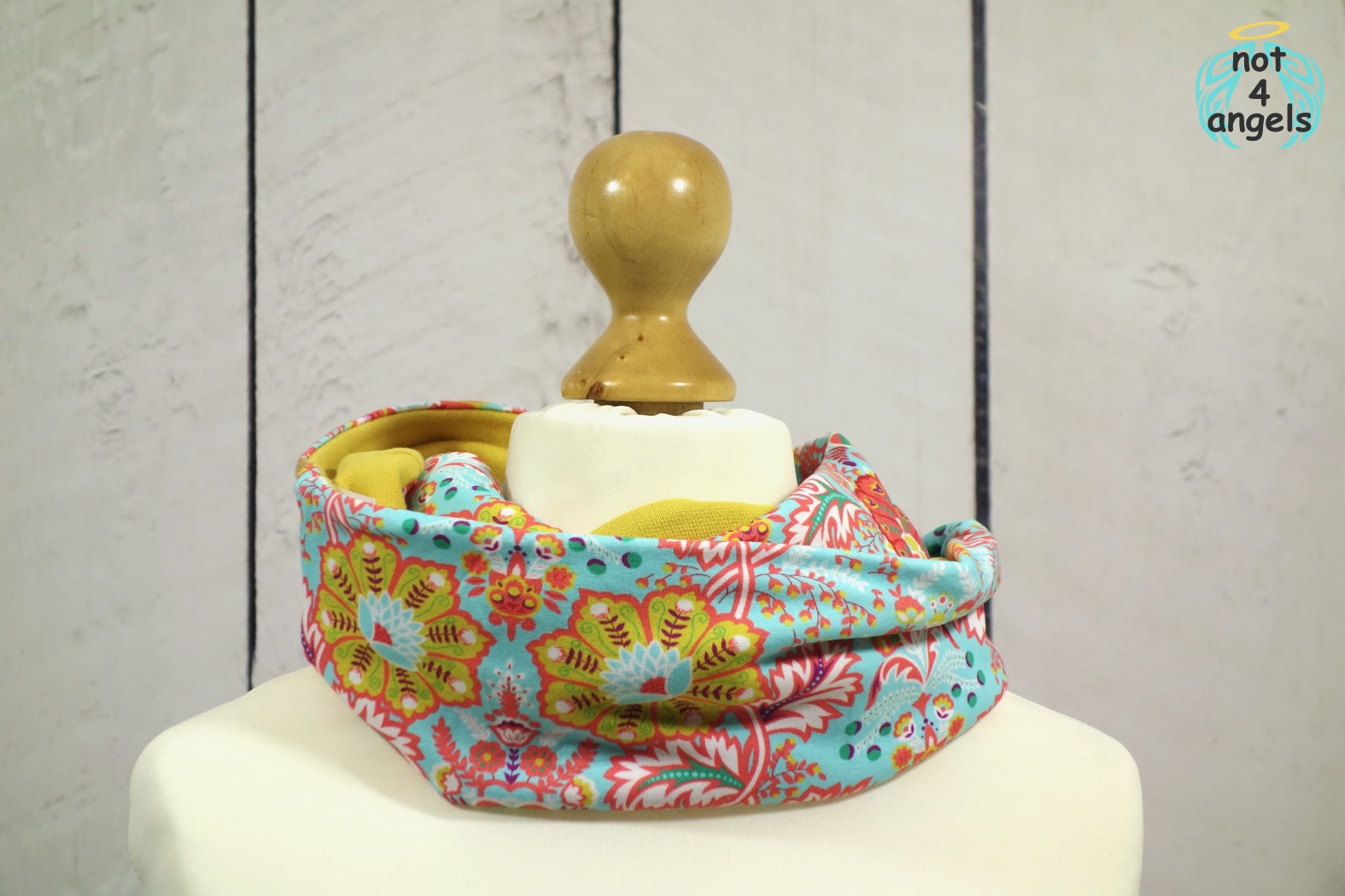Der Shoop ist ein halsnaher Wickelschal. Wickelt man ihn zweimal um den Hals, dann liegt er schön halsnah ohne einzuengen.