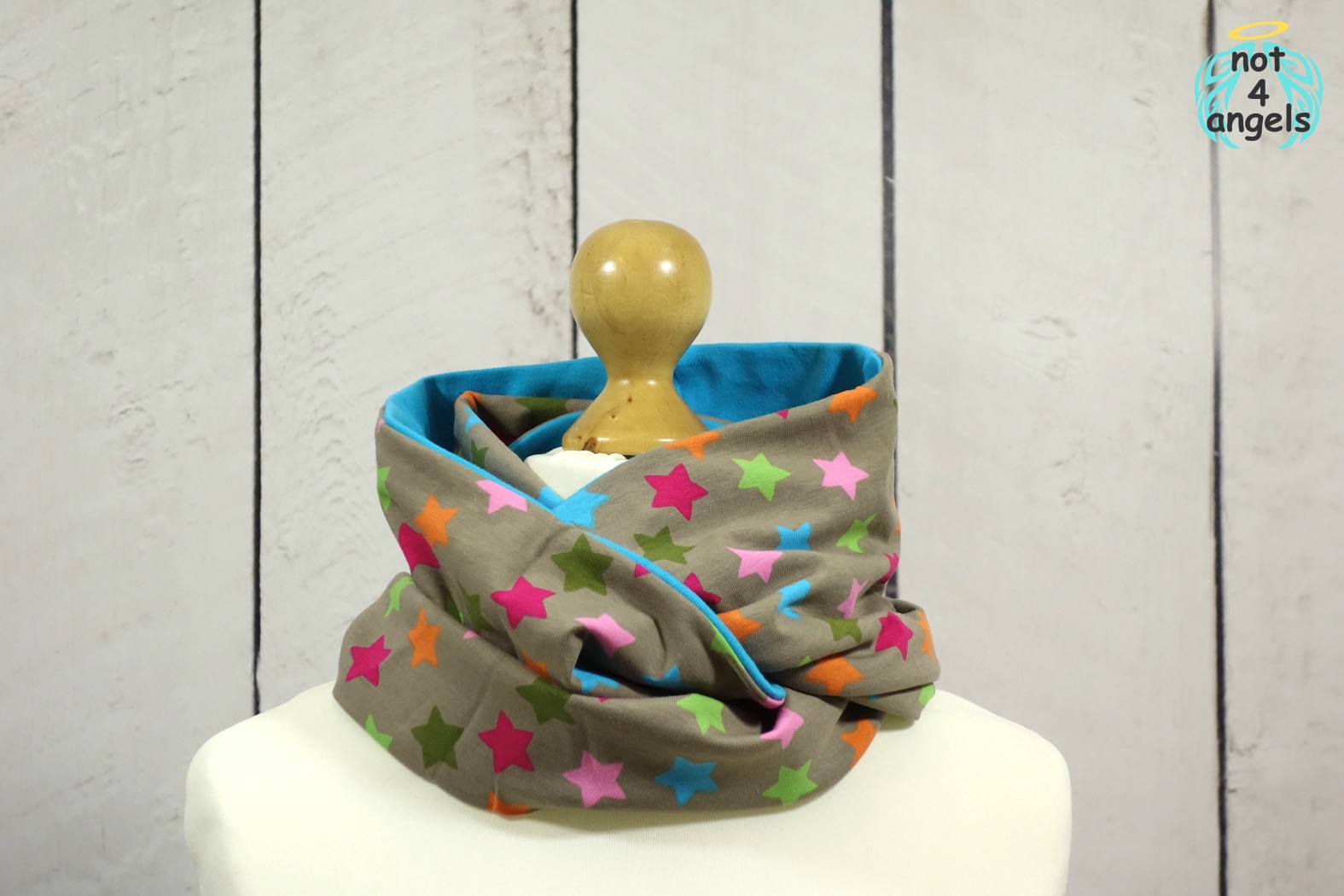 Mobile Preview: Shoop - bunte Sterne auf taupe mit türkis