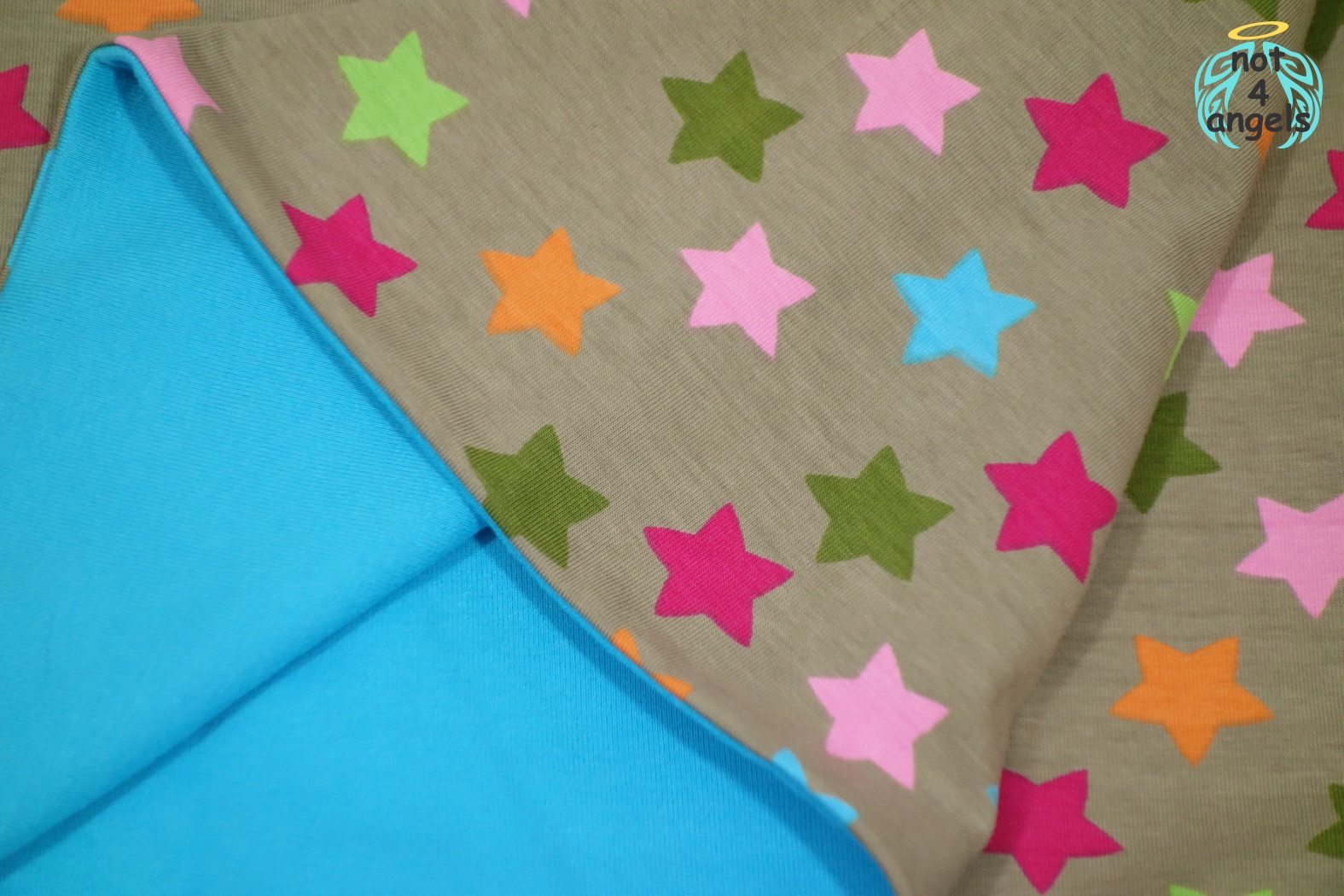 Preview: Shoop - bunte Sterne auf taupe mit türkis