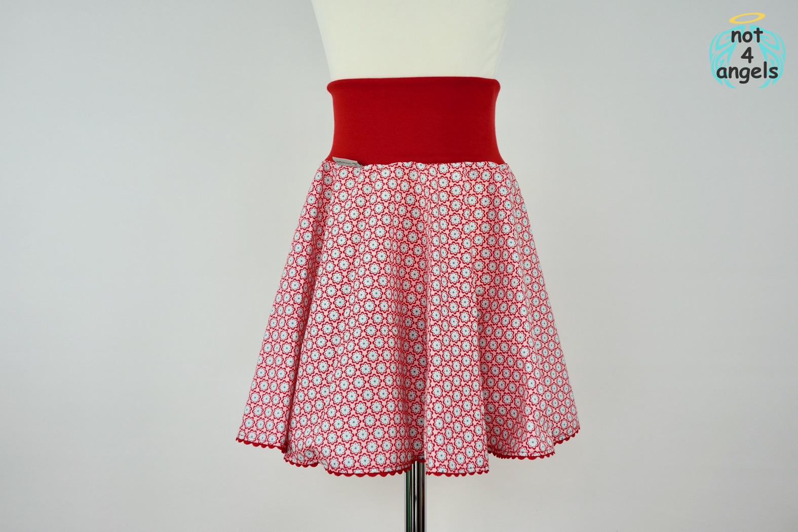 Der obere Teil des Röckchens besteht aus einem dehnbaren Bündchen, das einerseits ein leichtes Anziehen ermöglicht und andererseits den Rockteil etwas einkräuselt.